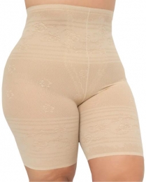 Корректирующие панталоны для полных женщин с вывязанным кружевным рисунком, средняя степень коррекции в области живота и бедер, против натирания внутренней части бедер.